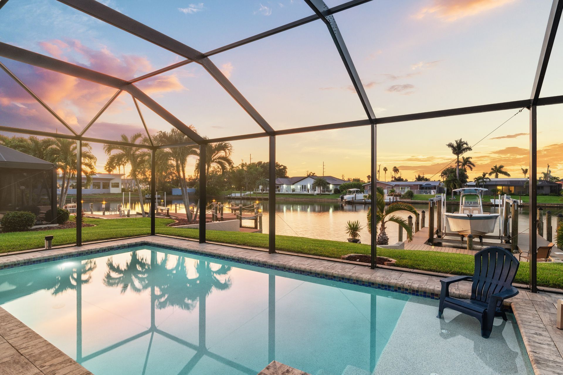 including pool, terrace, boat deck and screen.